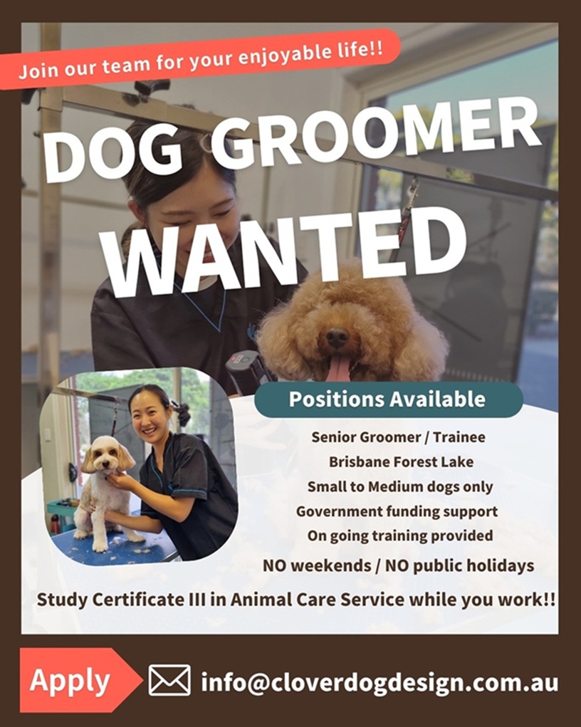 ブリスベンForest LakeにあるドッグサロンClover Dog Design では、一緒に働いてくれる新しいスタッフを募集しています。