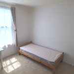– 部屋は3mx3mほどの大きさで、クローゼット、ベットベース(シングル)、マットレス、机、イス、扇風機&オイルヒーター付きです。