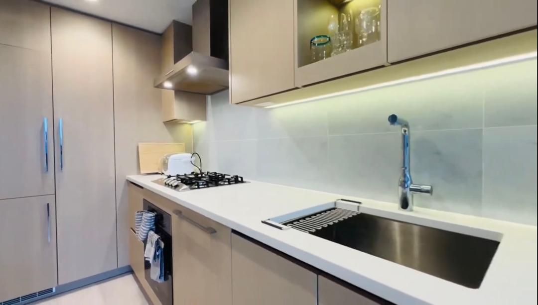 設備:洗濯機、組み込みコンロ、オーブン、冷蔵庫、電子レンジ、フローリング。