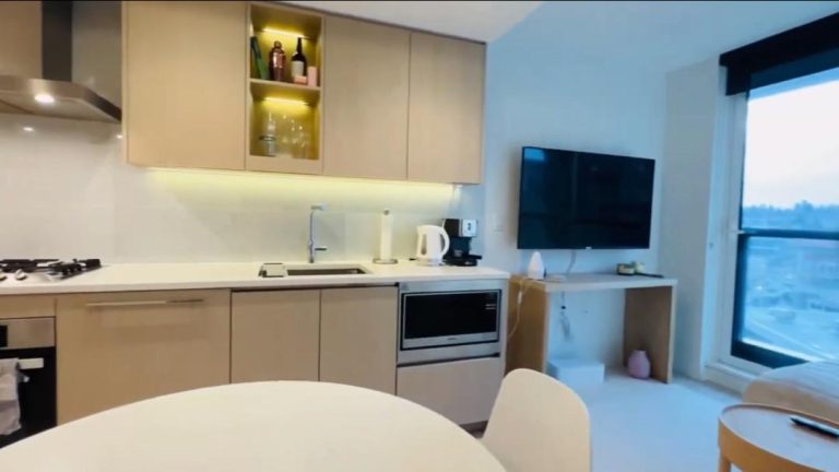 アパートには広々としたリビングルーム、洗濯機付きのプライベートバスルーム、ビルトインワードローブ、大きなベッドがあります。