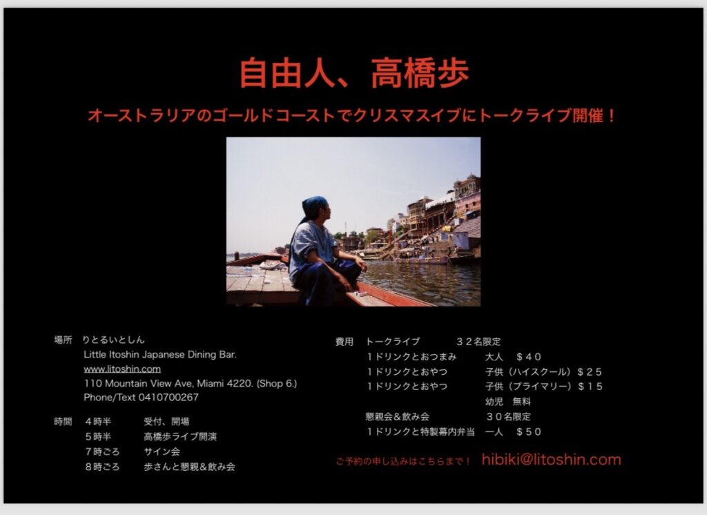 夢を持つ沢山の人達に影響を与え続ける 自由人+作家+事業家の高橋歩が緊急来豪 ゴールドコーストにて トークライブを行います。
