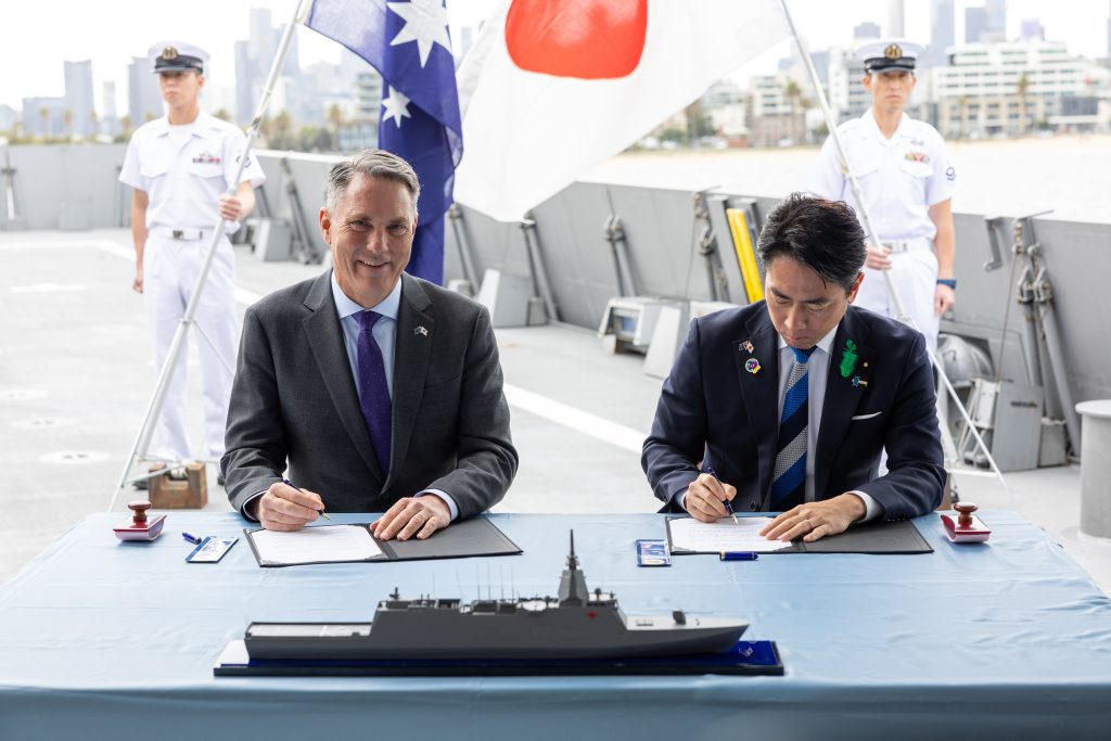 かつて太平洋で戦火を交えた日本とオーストラリアが、80年の時を経たいま、同志国として防衛協力をいっそう強化している。オーストラリアのリチャード・マールズ連邦副首相兼国防相は18日、三菱重工が建造する護衛艦「もがみ」の能力向上型(改良型)3隻を同国が導入する契約を正式に締結したと発表した。