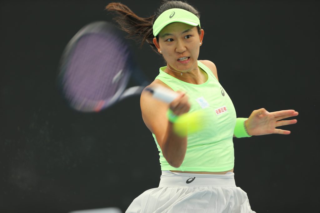 第1日セットの序盤は、シエラ選手も奮闘したが、第2セットに入ると内島選手は第1ゲームでブレークを許したのみで、その後はつけ入る隙を見せずに6─3、6─1で2セットを連取。ストレート勝ちで初戦を突破した。