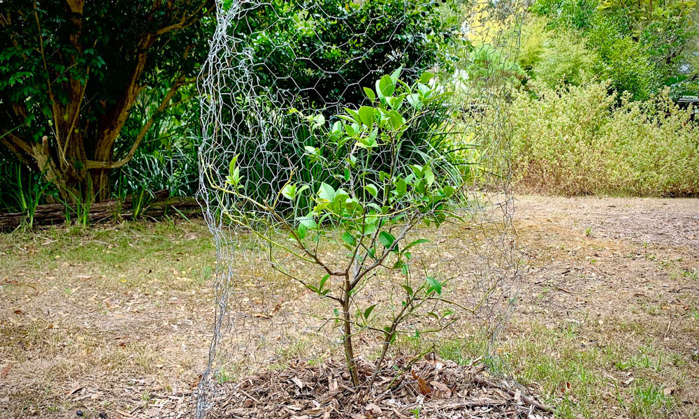 定植後、恐ろしいほどに乾燥した晩春から夏を越え、レモンの木は今も生きている。木が大きくなる前にカンガルーやポッサムに葉を食べ尽くされると弱ってしまうので、ある程度育つまで金網で保護しておくのは田舎ならではかもしれない。蝶の幼虫もカメムシも多く油断はならないが、生態系のバランスを損なわないよう、自然由来の肥料だけを使う有機栽培だ。自然本来のペースで、木自身がそこで育つかどうかを決めるだろう。人間はほんの少し手を貸すだけでいい。